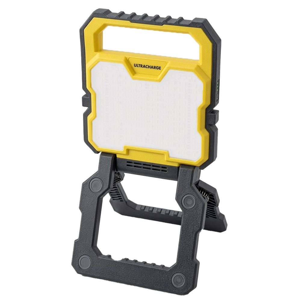 Introducing the ULTRACHARGE Rechargeable Worklight with a versatile 360-degree swivel stand, designed to deliver powerful illumination and convenience for various work environments. This durable worklight is ideal for outdoor, workshop, or emergency use, combining high brightness with practical features.