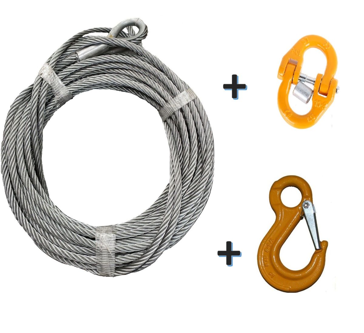 - Winch Rope + 10mm G80 Connector + Safety Hook with LatchÂ