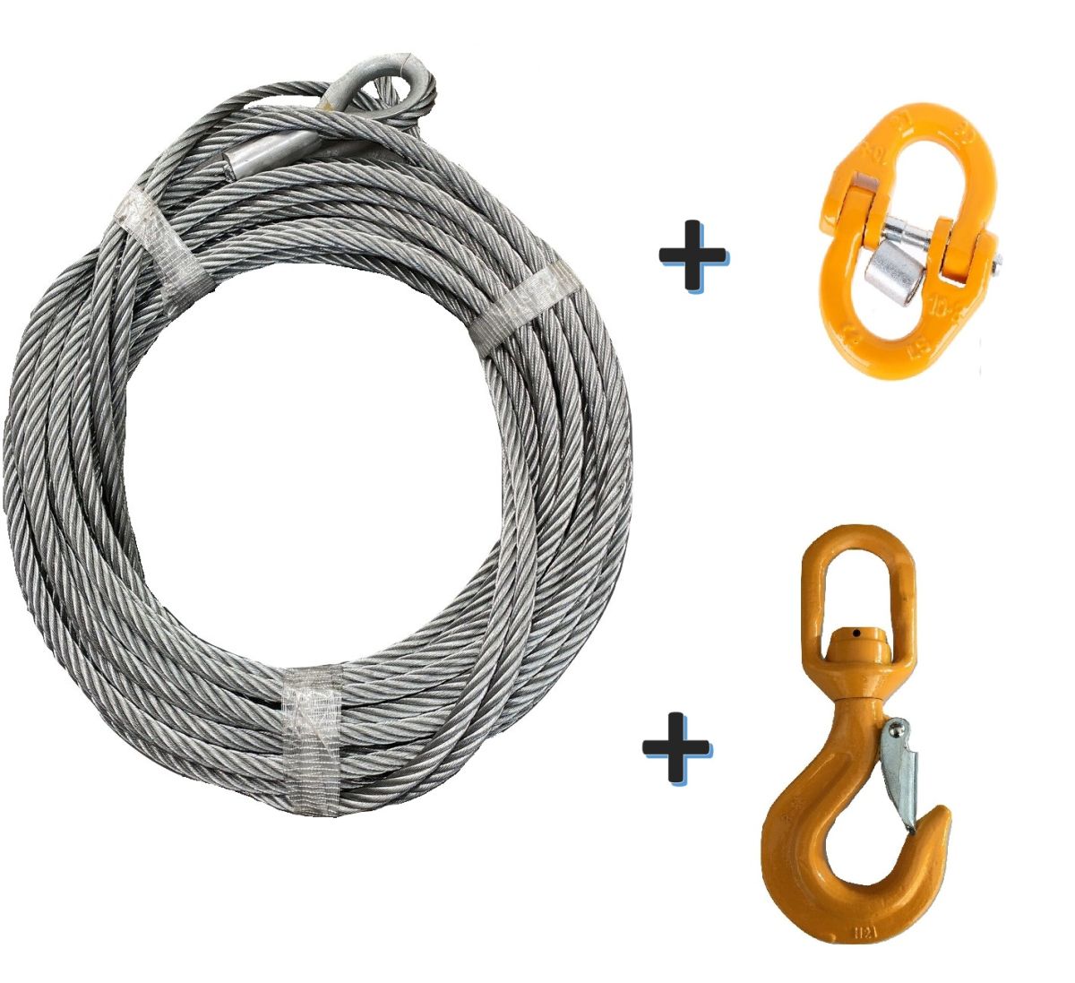 - Winch Rope + 10mm G80 Connector + Swivel Ball Bearing HookÂ